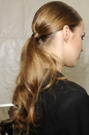The slick ponytail is one way to make your boring hair day into a truly unregrettable adventure in awesome hair. Tease your hair along the crown then, while keeping the sides slick and tight, you craft a beautiful ponytail that catches the eye and showcases your awesome locks. This style was seen at the runway at Missoni.